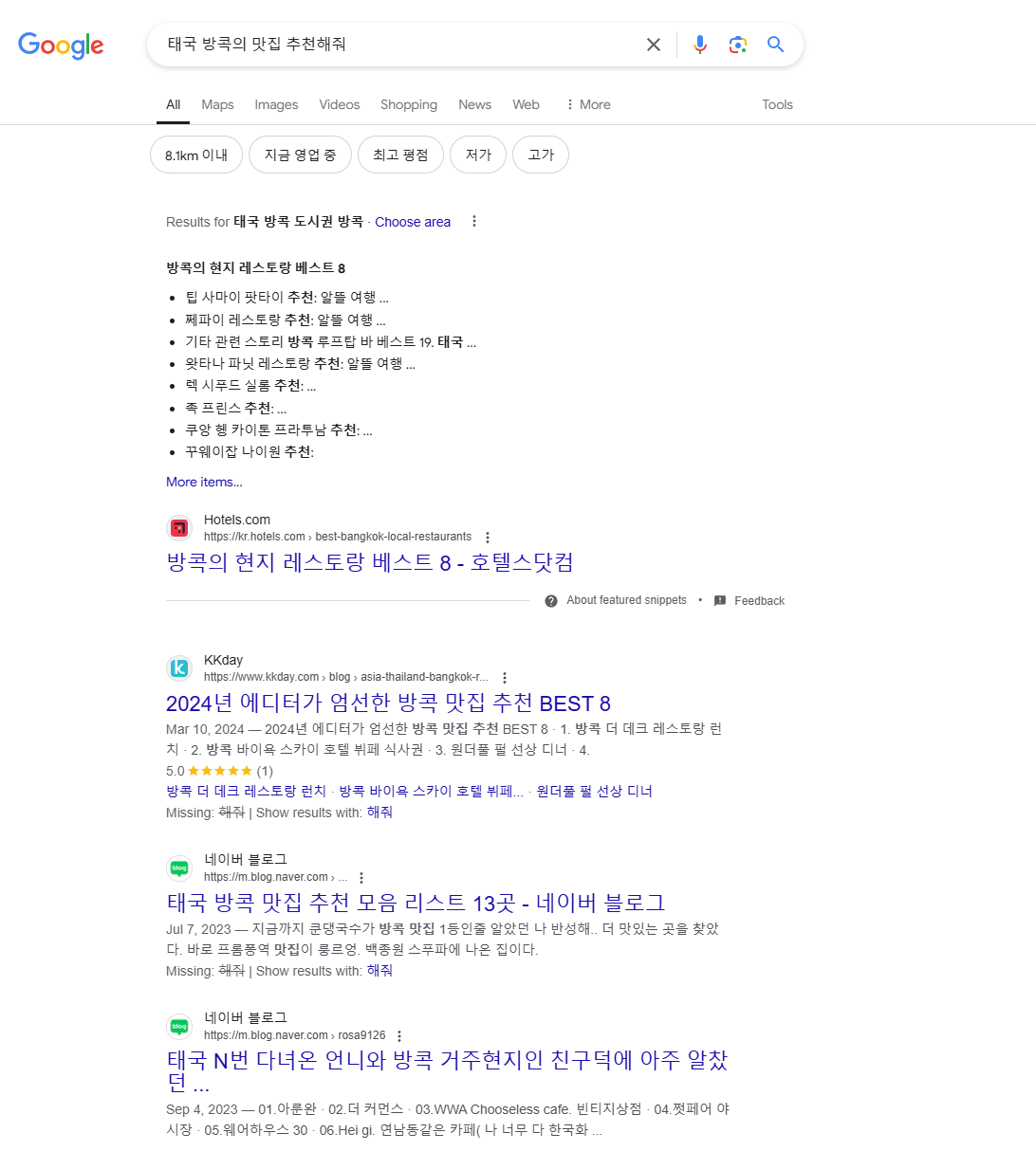 짧은 시간 이지만 제가 세 가지 검색을 실제로 사용해본 결과, 상황에 따라 다르게 활용하는 게 가장 좋더라구요!